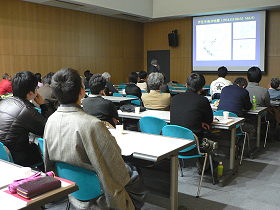 年次報告会への参加人数は50名。発表内容は最新の研究成果、今後の課題、および新たに興味のある研究分野など多岐にわたり、質疑応答は活発で持ち時間内に終わらない場面も多く見られました。また、山崎文人助教の退職記念講演「御嶽山における地震火山活動」では、2010年2月3-4日御嶽山南東麓を中心に、深さ20-40kmの深さでバースト的な地震活動が発生したという最新の観測結果が公表されました。