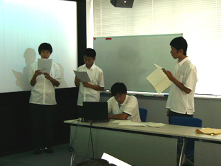 研究発表は何度行ってもなかなか緊張するものです。ましてや、生徒です。彼らは何度もプレゼンと原稿訂正を行い、更に10回近く通し練習を行い本番に望みました。その面でも大変良い機会になったと感謝しております。もっとも、彼らには、口頭発表は残らないから気楽に、とは言っておきましたが。また、研究者の視点は、彼らの感想にある通り新鮮で盲点でありました。乱数発生などはなかなか難しいところがありましたが、今後の研究の方向性の示唆を頂き、本当にありがとうございました。