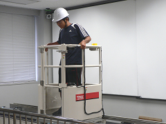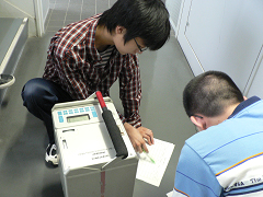| 第3日 [建物の振動計測] ・地震による建物の揺れと被害、振動の基礎(講義) ・高感度センサーによる建物微振動の計測と人力加振実験(演習) ・加振実験の結果の分析と、地震時の建物の揺れの予測(演習) ・予測した建物の揺れを搭乗型振動台で体験(演習) ・地震防災の重要性(講義、まとめ) |