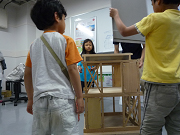 ピノキオぶるる:すぐ立てなおせる家の模型を壊す。筋交いなどをつけることより壊れにくくなる。