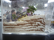 断層班:海溝型地震をミニチュア模型で表現した。スポンジを大陸側プレートに見立てて、繰り返し起こる海溝型地震を再現した。