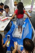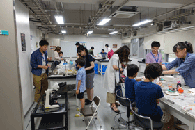 昨年に引き続き今年度も、地球惑星ダイナミクス講座と地球惑星物理学講座の学生、地質・地球生物学講座が協力して研究室公開を行いました。今年実施した企画は、「ダイラタンシー体験」、「火山噴火再現実験」、「ダジックアース」、「偏光板で万華鏡を作ろう」の合計4件でした。昨年度は、大盛況のあまり、中で身動きが取れなくなってしまうこともありました。そこで、今年度は、思い切って昨年度より企画を一つ減らし、一つ一つの企画をじっくりと楽しむことができるようにしました。また、「バリアフリー」を目指した配慮を行い、通路を広くとる配置を行いました。以上の試みにより、来場者の方々の平均滞在時間が伸び、満足度が上がったような印象を受けます。一例としては、アンケートの回答数が例年の倍ほどの50件に達しました。最後になりましたが、本企画の演示に尽力いただいた学生の皆様、講演を行っていただいた伊藤先生、企画にご協力いただいた先生方、そして来場者の皆様に感謝いたします。皆様すべてのご協力あっての「地球不思議体験」でした。