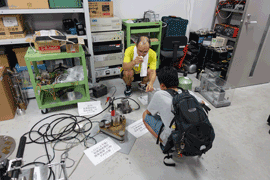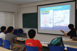 2017年8月8日から10日の3日間、名古屋大学へ入学を希望する高校生を対象に、本学の教育研究の紹介や施設見学を通して、進学の目的意識を持っていただくためオープンキャンパスが開催されました。今年度の理学部企画のスケジュールでは、豊田講堂で9:45から理学部紹介があり、理学部懇談会を経て、地球惑星科学科の研究室体験ツアーが行われました。地震火山研究センターでは、研究紹介を理学部E館411で、観測装置展示を107で実施しました。研究紹介はスライドやポスターで研究の説明を行い、観測装置展示室では、実際に使用している地震計の説明を行いました。参加した高校生の皆さんは、見学の案内をしたダイナミクス講座の大学院生達から研究している生の声を聴けて、より身近に地震火山研究への興味を持てたと話してくれました。ツアー以外にも直接、見学に訪れる熱心な高校生も多く見られました。また、すでに進路を決めて、地震や火山の勉強をしている高校生もいて、担当の教員や技術職員に