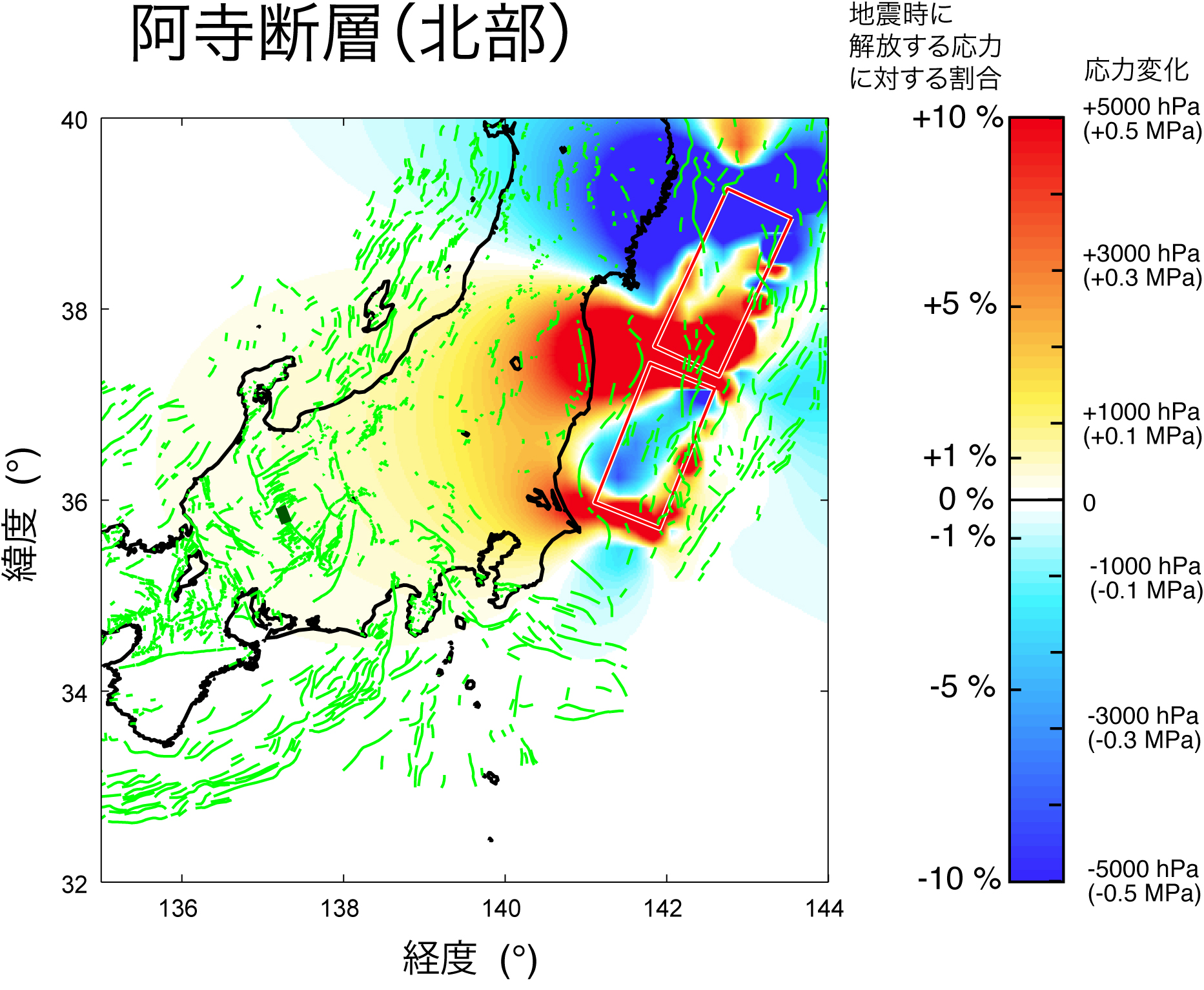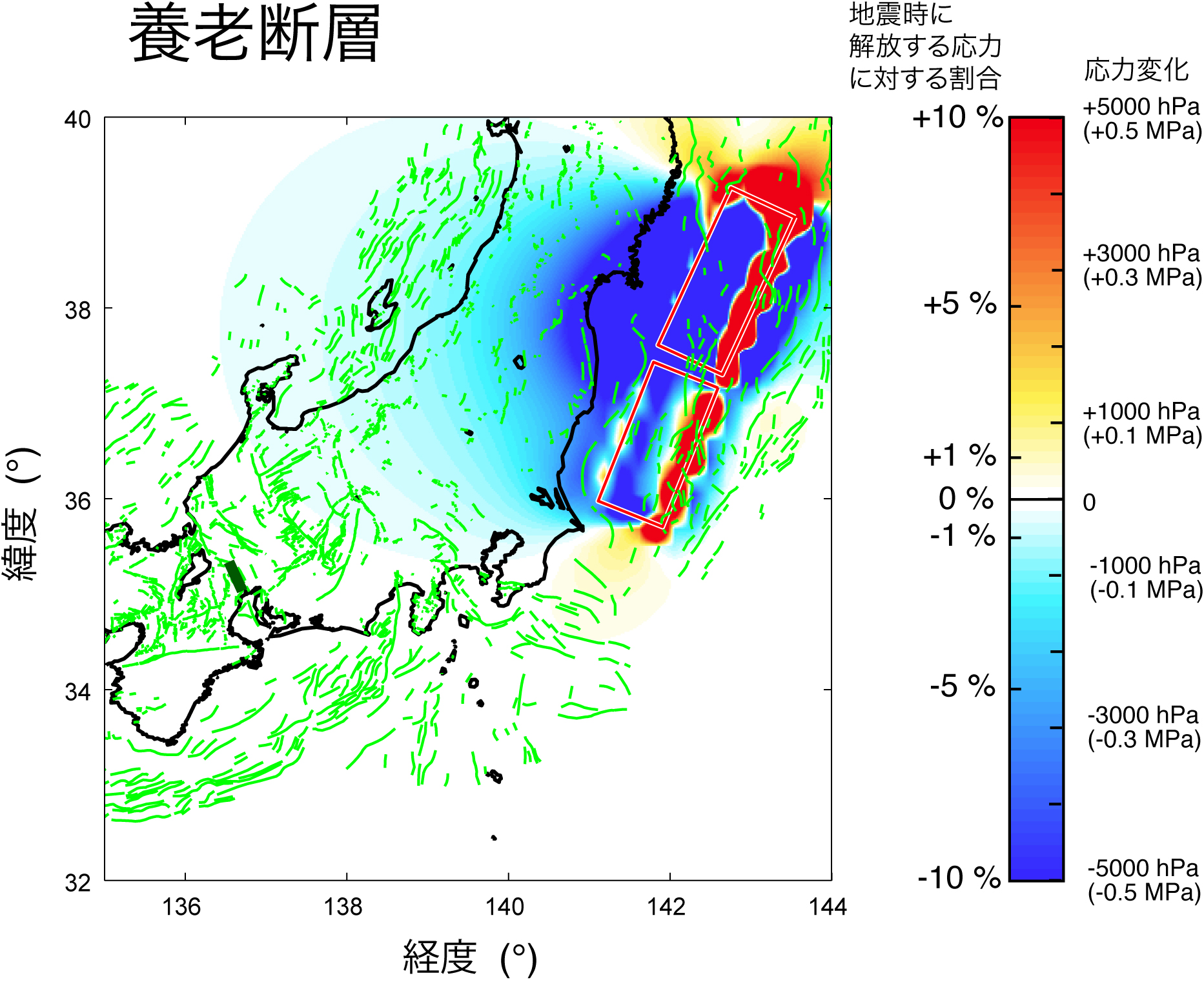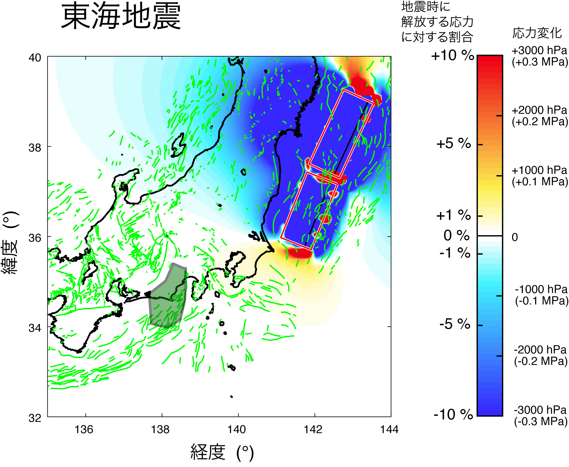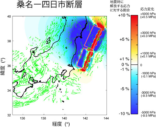 (※2)応力変化の単位はhPa(ヘクトパスカル)で表している.およそ1013hPaが地表での大気の圧力に相当する.また,地震時に解放する応力に対するパーセンテージでも示した.