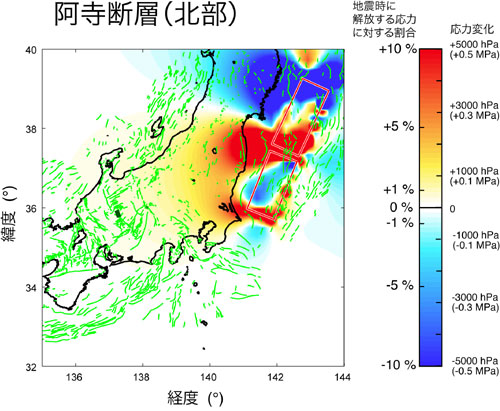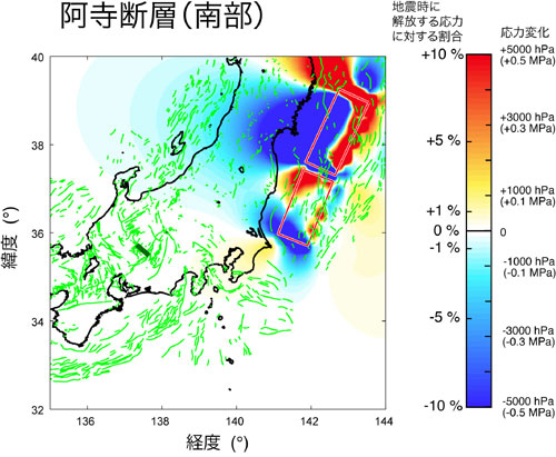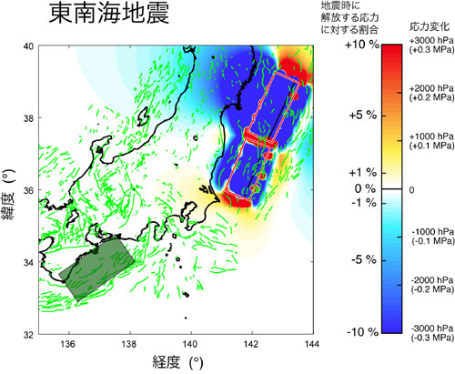 (※3)求められた応力変化は,地震発生を促進する方向に増加している場所でも,地震時に解放する応力に対して高々0.1~0.5%程度であり,直ちに地震発生の危険性が高まったとは言えない.