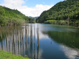 自然湖は、1984年長野県西部地震の際に、御嶽崩れの土砂が王滝川をせき止めて出来た湖です。