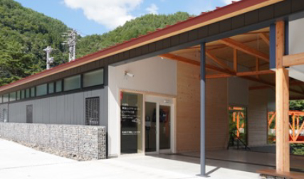 国道19号線から王滝方面に県道を入って、赤い屋根の建物が目印です。2022年8月27日に開館したビジターセンターです。御嶽山に関する様々な情報が集められます。