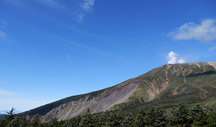 田の原駐車場は、王滝口登山道の入り口です。田の原駐車場から是非ともご覧頂きたいのは、「御嶽崩れ」です。御嶽崩れは、長野県西部地震(1984年9月14日、マグニチュード6.8)の強い揺れにより御嶽山で発生した山体崩壊です。