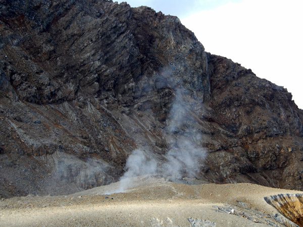 御嶽山では、有史以降初となる1979年の噴火で、地獄谷から王滝頂上付近にかけて北西―南東方向に並ぶ10個の火口列が形成されました。それぞれの火口には、北西から南東に向かって1から10までの番号が付けられています(79-1から79-10)。1991年と2007年の噴火の規模は、1979年や2014年のおよそ1万分の1程度で、いずれも79-7火口から火山灰を噴出しました。2014年の噴火では、1979年の噴火口は使用されず、79火口列の南西側にほぼ並行する形で新たな火口列を形成しました。火口列は、一ノ池の西側から地獄谷、奥の院の下付近にまで延びています。御嶽山に限りませんが、火山はいつも同じ場所から噴火するとは限らないということを知っておく必要があります。