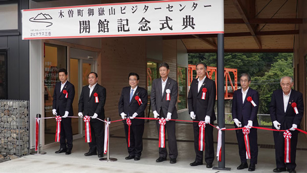 2022年8月27日(土曜日)、ついに御嶽山ビジターセンターが開館しました。ビジターセンターは2箇所にあり、王滝村の田ノ原[やまテラス王滝]と木曽町の三岳[さとテラス三岳]にそれぞれ同時オープンしました。それぞれの施設では、御嶽山に関する自然・文化・歴史の紹介や火山のしくみ、それに2014年噴火災害に関する展示が行われています。[やまテラス王滝]は春から秋にかけての開館ですが、[さとテラス三岳]は通年で開館しています。オープニングには長野県知事や地元選出議員の方々も列席され会館をお祝いしました。名古屋大学からも杉山総長にご出席いただき、[さとテラス三岳]でのテープカットをされました。