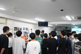 2025年8月7日から8日の2日間、名古屋大学へ入学を希望する高校生を対象に、本学の教育研究の紹介や施設見学を通して、進学の目的意識を持っていただくためオープンキャンパスが開催されました。今年度の理学部企画のスケジュールでは、豊田講堂で9:30から理学部紹介があり、理学部学科紹介を経て、地球惑星科学科の研究室体験ツアーが行われました。地震火山研究センターでは、研究紹介・観測装置展示を理学部E101で実施しました。研究紹介はスライドやポスターで研究の説明を行い、観測装置展示では、実際に使用している地震計の説明を行いました。参加した高校生の皆さんは、見学の案内をしたダイナミクス講座の大学院生達から研究している生の声を聴けて、より身近に地震火山研究への興味を持てたと話してくれました。