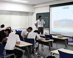 岐阜県立加茂高等学校生徒40名が2013年7月26日(金)に、SPP(サイエンス・パートナーシップ・プロジェクト)実習のため地震火山研究センターに来訪しました。生徒らは10名ずつ、地形・地震活動解析・測地実習(重力探査)・地震観測実習(屈折法探査)の4つのテーマに分かれて講義を受け、観測方法を学び、実習を行いました。