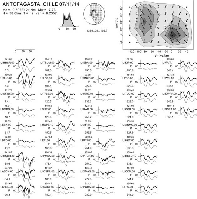 ● 概略・特徴: 11月14日15時40分(UT),チリ アントファガスタでM7.7の地震が発生しました.