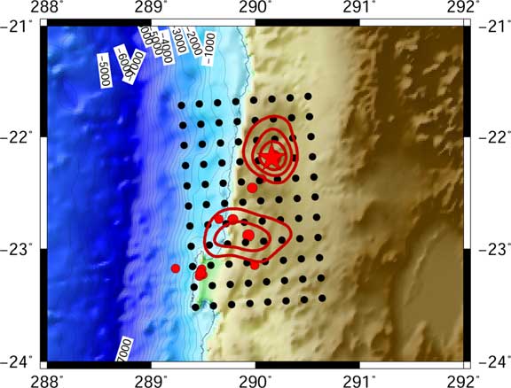発生時刻 震央 深さ M 07/11/14 15:40 (UT) 22.20°S 69.8°W 60km 7.7