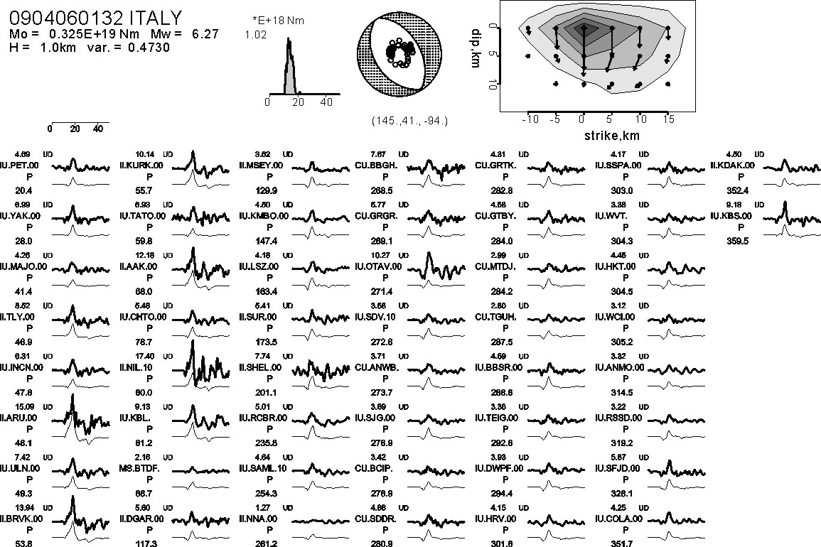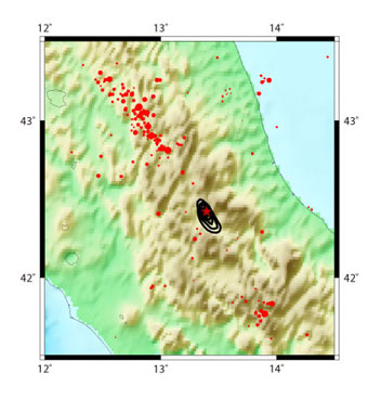 発生時刻 震央 深さ M 09/04/06 01:32 (UT) 42.42°N 13.395°E 10km 6.3