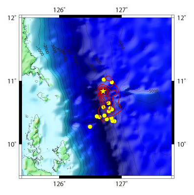 発生時刻 震央 深さ M 12/08/31 12:47:34 (UT) 10.838°N 126.704°E 34.9 km 7.6
