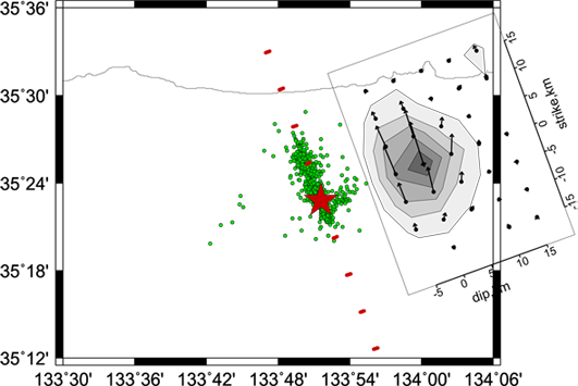 発生時刻 震央 深さ M 16/10/21 14:07:23 (JST) 35.38°N 133.86°E 11 km 6.6